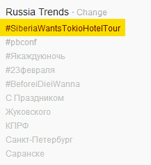 # SiberiaWantsTokioHotelTour tendencia rusa (23/02/2013)